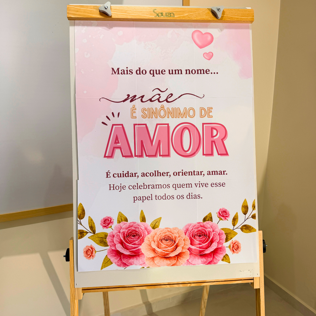 Este cartaz para o Dia das Mães foi desenvolvido para escolas que desejam trabalhar a data com sensibilidade, inclusão e significado, valorizando todas as formas de cuidado e amor presentes na vida dos alunos.