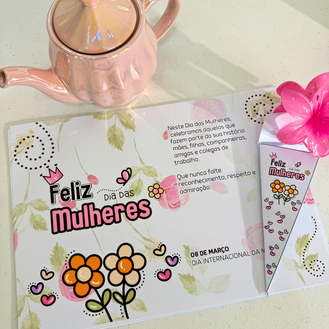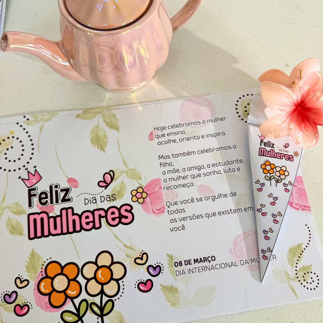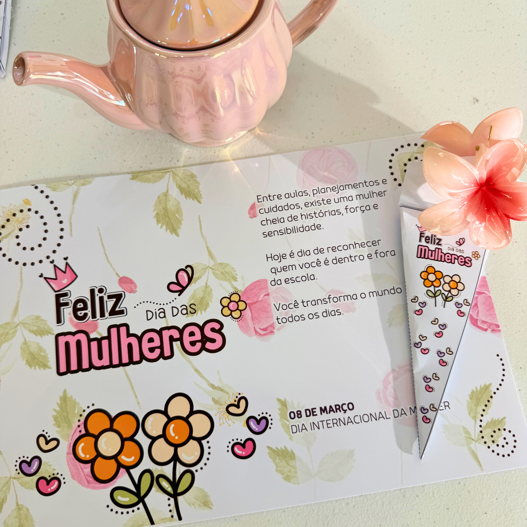 O Kit Dia das Mulheres Flores foi criado para transformar o ambiente escolar em um espaço de reconhecimento, beleza e carinho, valorizando cada mulher que faz parte da sua comunidade.