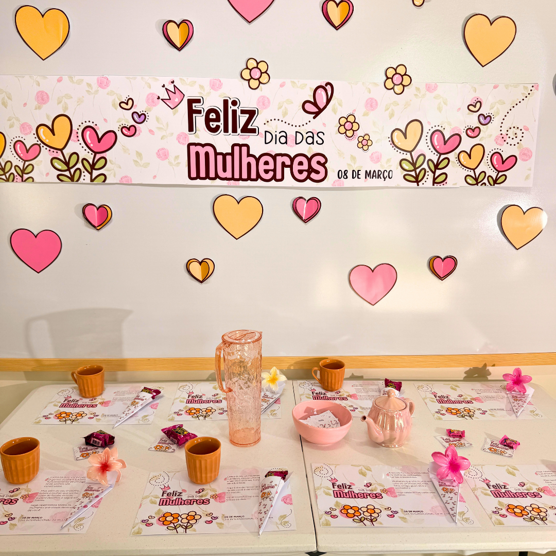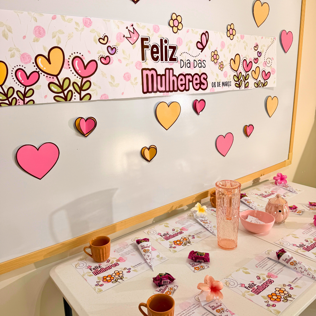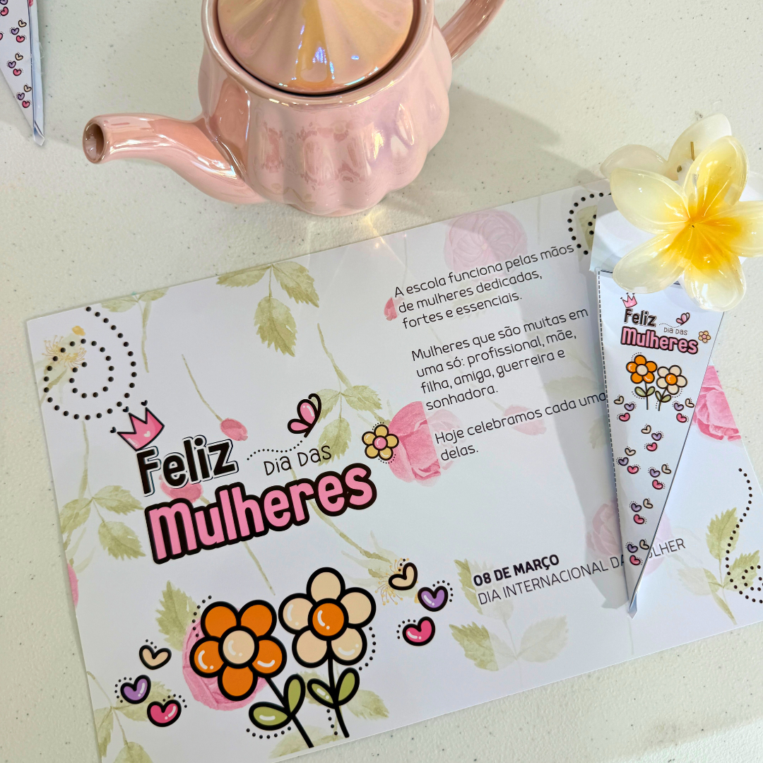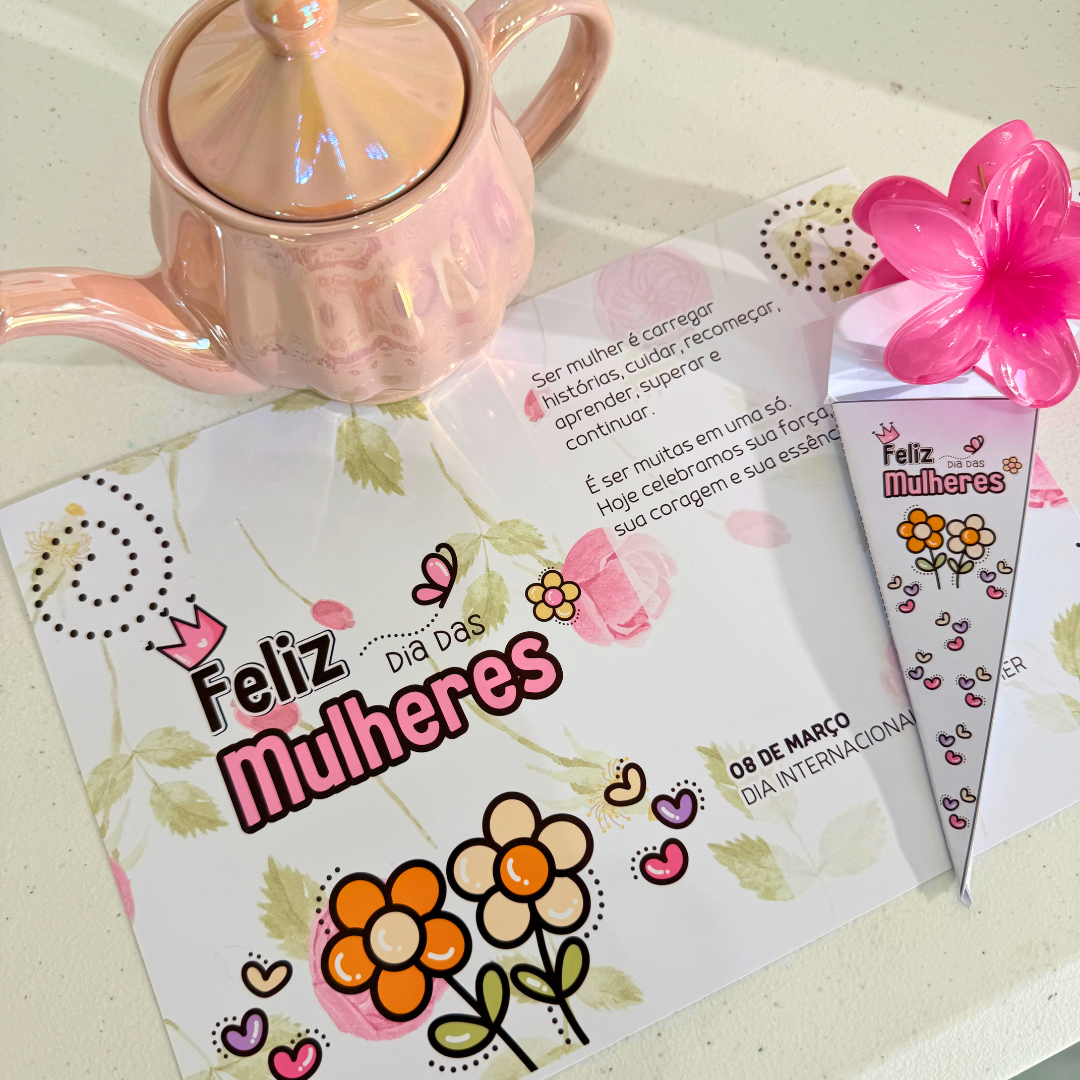 O Kit Dia das Mulheres Flores foi criado para transformar o ambiente escolar em um espaço de reconhecimento, beleza e carinho, valorizando cada mulher que faz parte da sua comunidade.