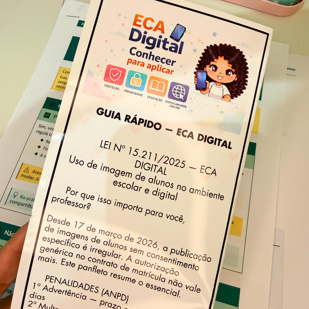 A sua escola está preparada para a nova lei de proteção digital de crianças? Desde 17 de março de 2026, a Lei 15.211/2025 — o ECA Digital — está em vigor e muda tudo sobre como professores e escolas podem usar a imagem dos alunos.