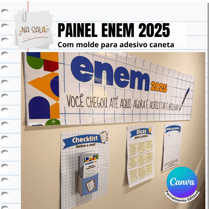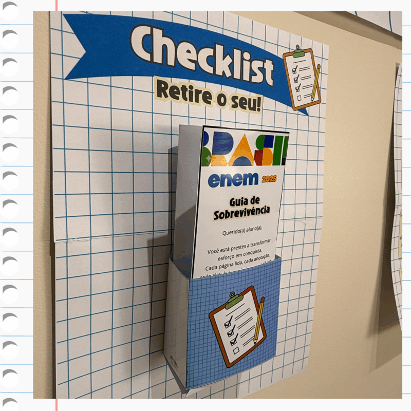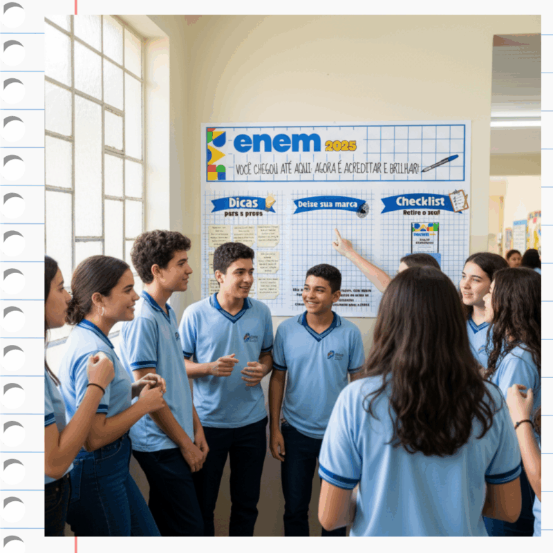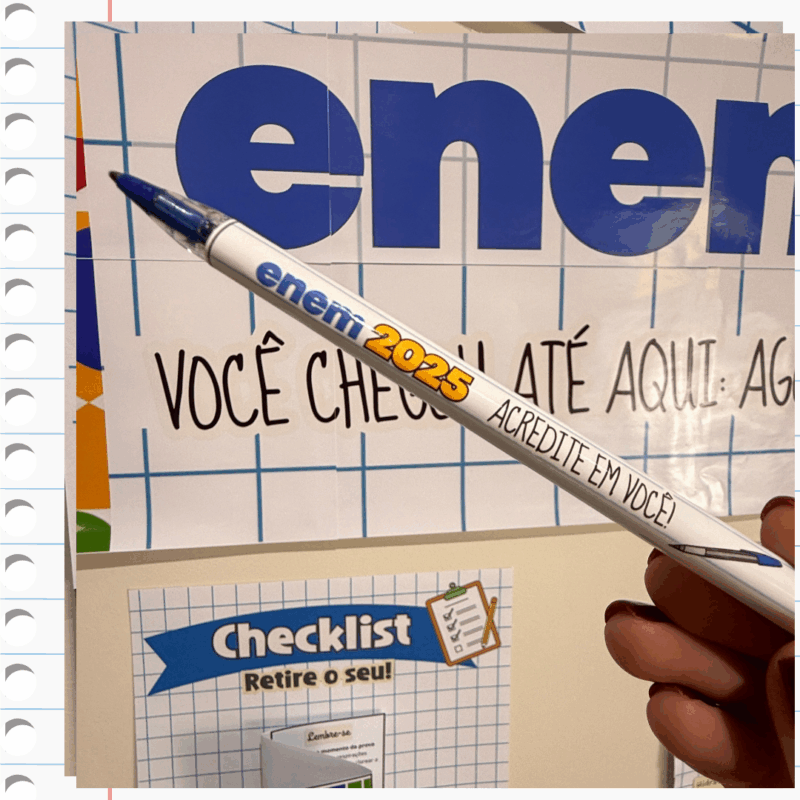 Transforme os dias que antecedem o ENEM em um momento de motivação e acolhimento na sua sala de aula. O Painel ENEM – Deixe sua Marca é um recurso pedagógico interativo em PDF, criado especialmente para professores que desejam preparar seus alunos de forma prática e inspiradora.